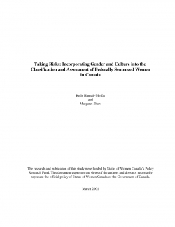 Taking risks : incorporating gender and culture into the classification and assessment of federally sentenced women in Canada